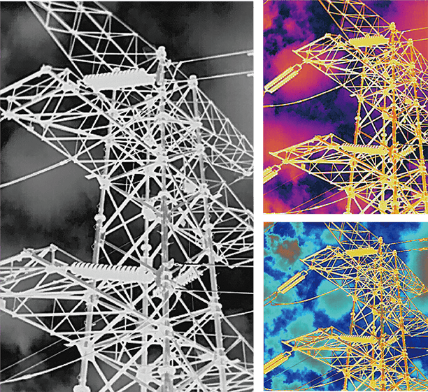 White Hot | Cold and Hot | Rainbow | Enhanced Rainbow | Ironbow | Lava | Arctic | Searing | Gradation | Heat Detection